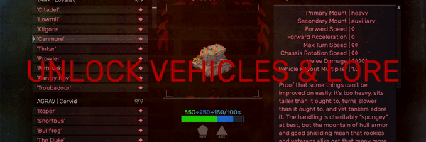 56种不同的机甲、坦克、浮行载具,与及40种不同武器可供解锁