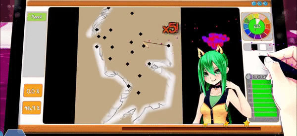 帮她画出自己的作品并上色来赚取货币