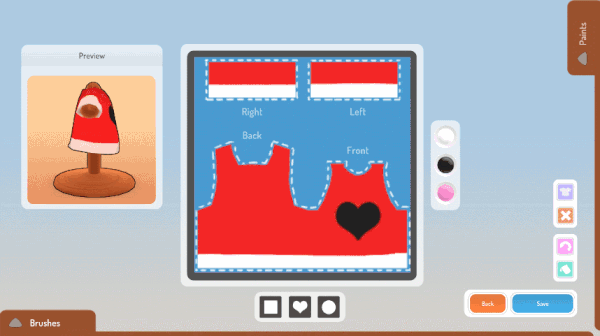 上色:穿上工作服,拿出刷子画上缤纷颜色。您可以自行设计壁纸、地板,甚至设计 T 恤给自己和居民穿着。让小镇里的所有人都穿上您亲手设计的独特衣服!