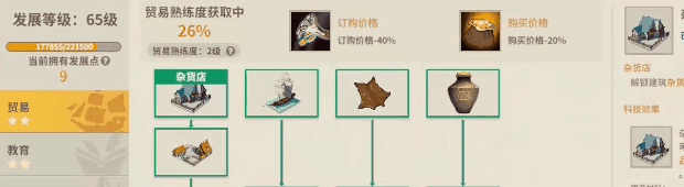 游戏中的开展道路分为,买卖、教育、矿业、制作、农业、加工、物流、宜居8种。每一种都能